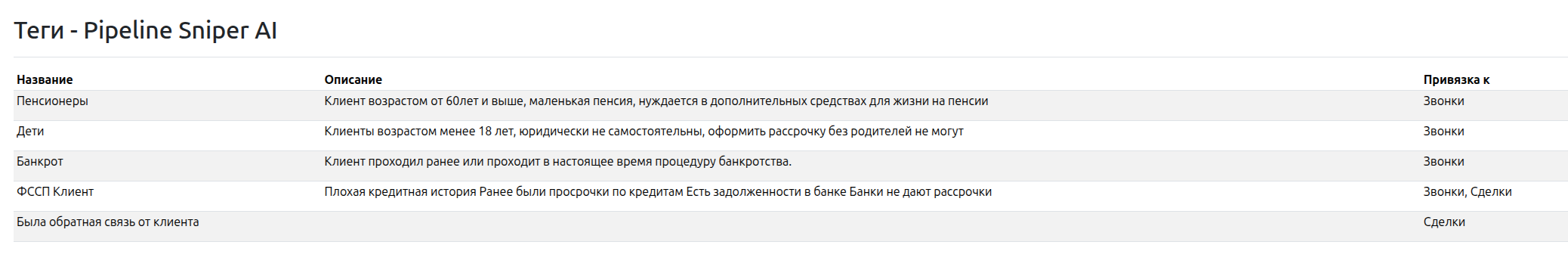 Обновили настройку тегов. Теперь можно указать к каким сущностям он может быть применен (звонок и/или сделка)