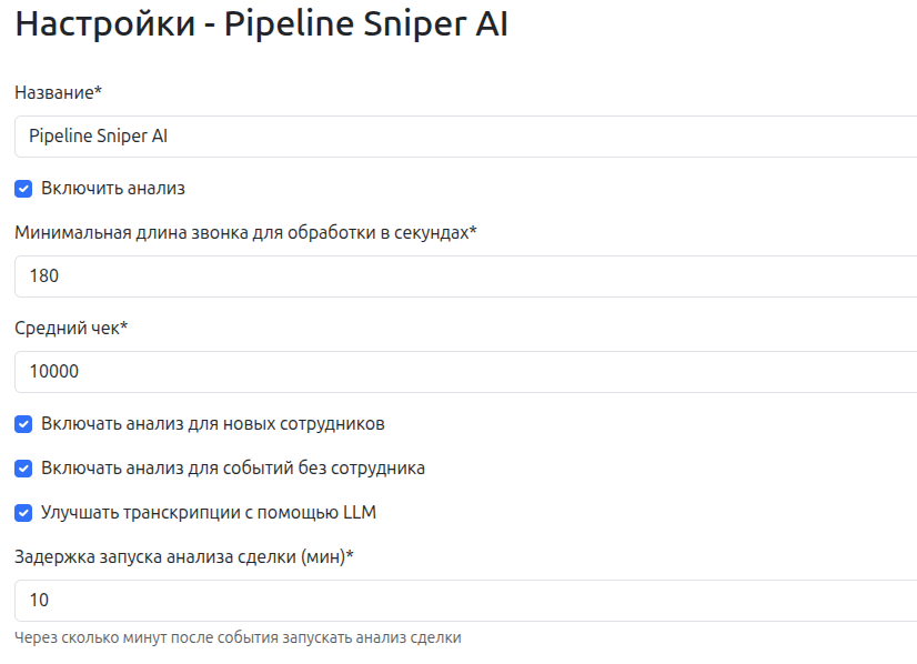 Для клиентов, кому нужен только анализ сделок, добавили возможность отключать анализ звонков.