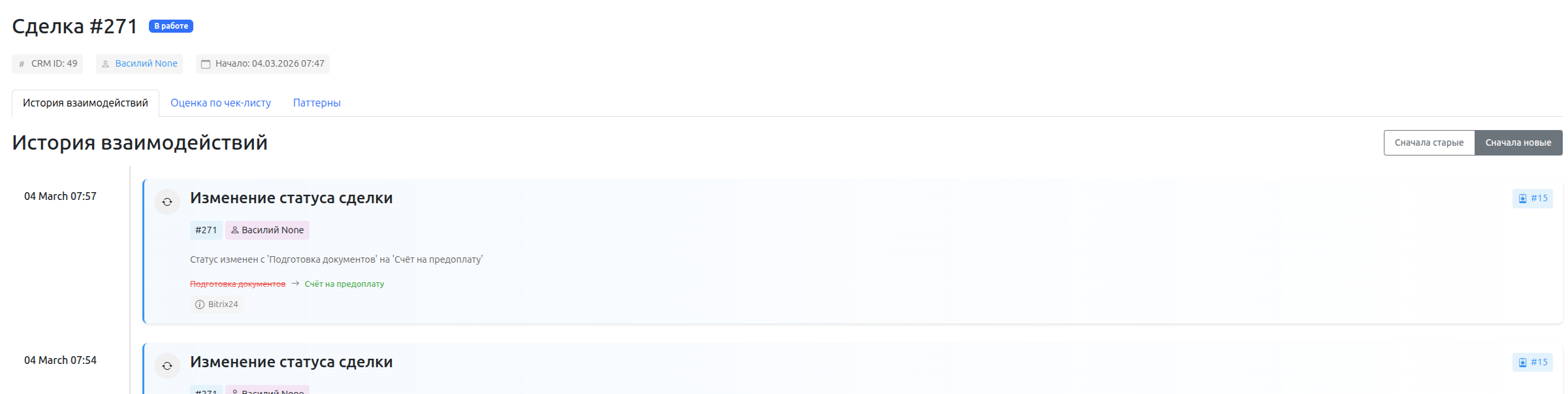 Добавили возможности сортировки событий в таймлайне сделки по дате